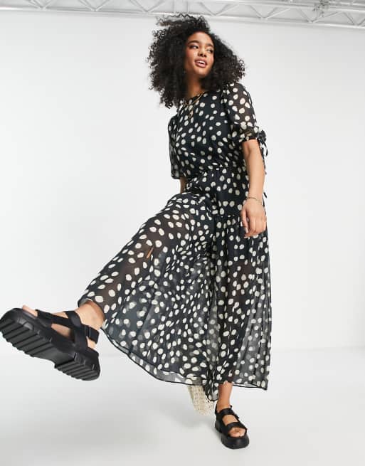 Asos Design Gesmokter Chiffon Jumpsuit In Schwarz Weiss Gepunktet Asos